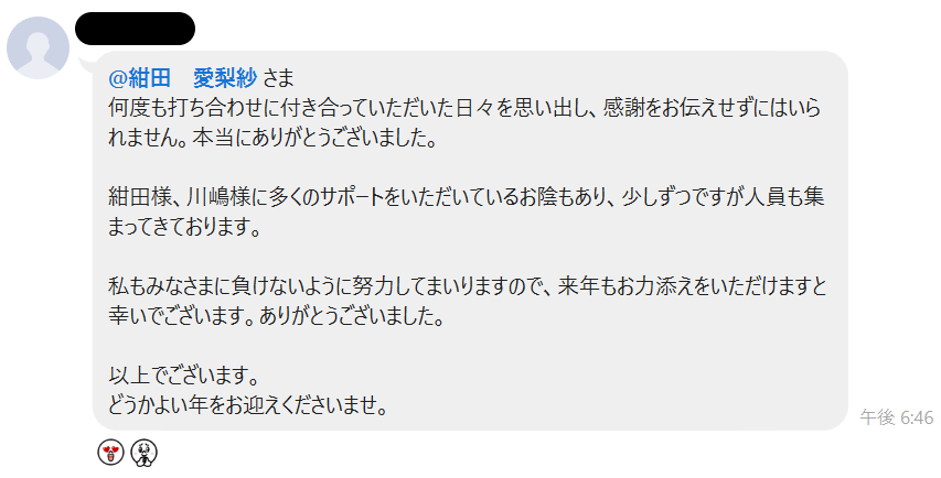ぜひ来年もお力添えくださいますようよろしくお願いします